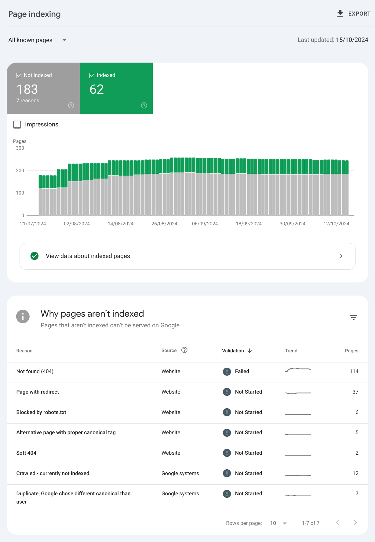 Additionally individual pages may have certain issues in relation to the crawled data. These usually show up when page links may have been changed, or the site structure has changed. Ideally links shouldn't go dead, so if a link has changed, it's better to do a permanent redirect.
